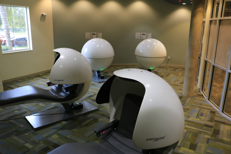 Apartment 5 features campus community space in the form of a large lounge area that includes a gaming television/play area, a fitness center, an arcade gaming area, a large saltwater aquarium, and state-of-the-art energy pods in our Relaxation Room.