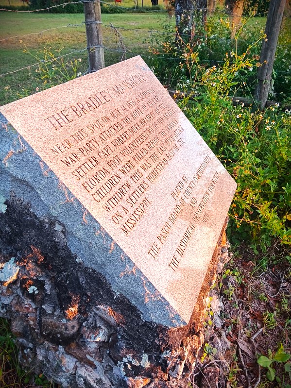 The Bradley homestead was attacked by a party of Seminole Indians, perhaps in revenge on Captain Bradley for having hunted down the brother of the famous Second Seminole War chief Tiger Tail.