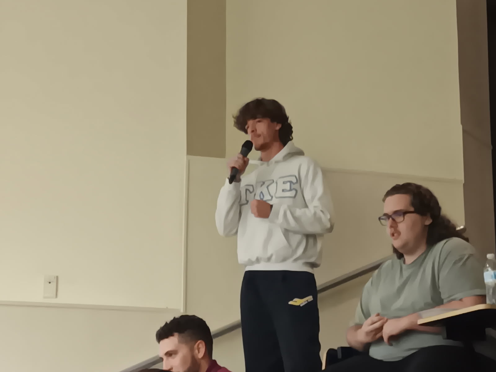Student Simon Zylbersztajn asks Folds a question about leading members of a team who aren’t motivated to contribute. (Photo was taken by Elijah Penn)