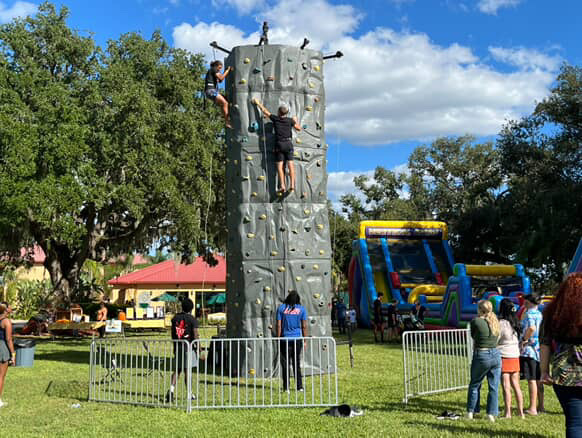 Rides and attractions arrived at the event, such as swings, bull riding, rock wall, a giant darts soccer game, bounce house obstacle course organized by the Campus Activities Board, and the rides brought joy to kids as well as students.
