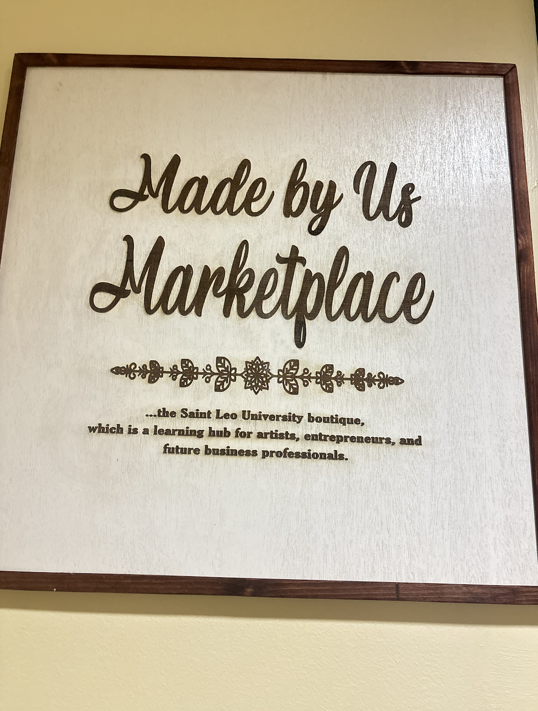 Some very exciting news for business students was announced on Nov. 5th! If you go to the Student Activity Building (SAB), there is a room at the end of the hallway. There is a huge sign on the wall that says, “Made by us Marketplace.” Under the title, it says, “The Saint Leo Boutique”, which is a learning hub for artists, entrepreneurs, and future business professionals.
