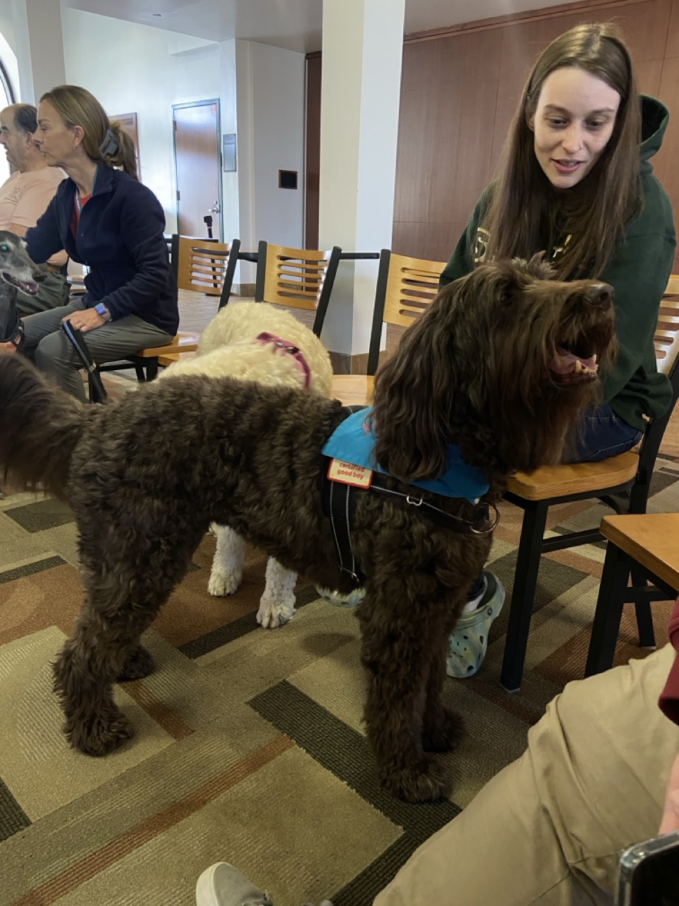 “We host this event because we know many students are homesick or far from home for the first time, so we want to bring something that feels familiar. These dogs are support dogs, and they are very socialized.” Said Nathaniel Chavez, Assistant Director of Student and Family Engagement.