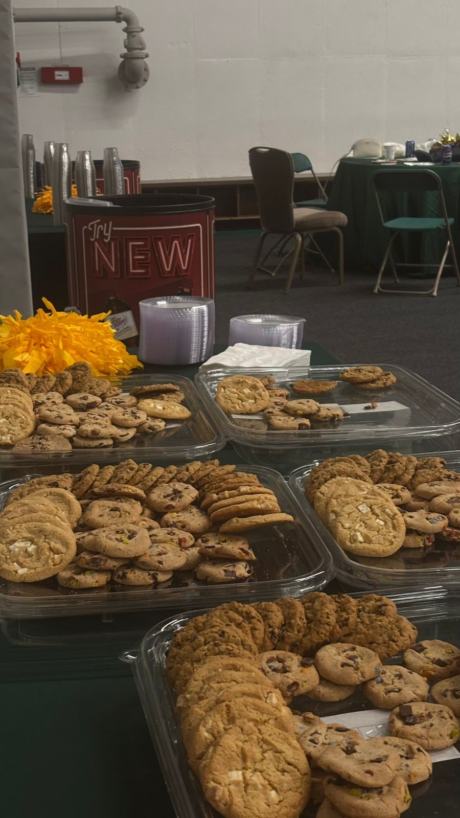 When you walked through the entrance, there was a free dinner with delicious food, including salad, fruit, and cheese. As well as different types of pasta and a dessert table with cookies and coffee.