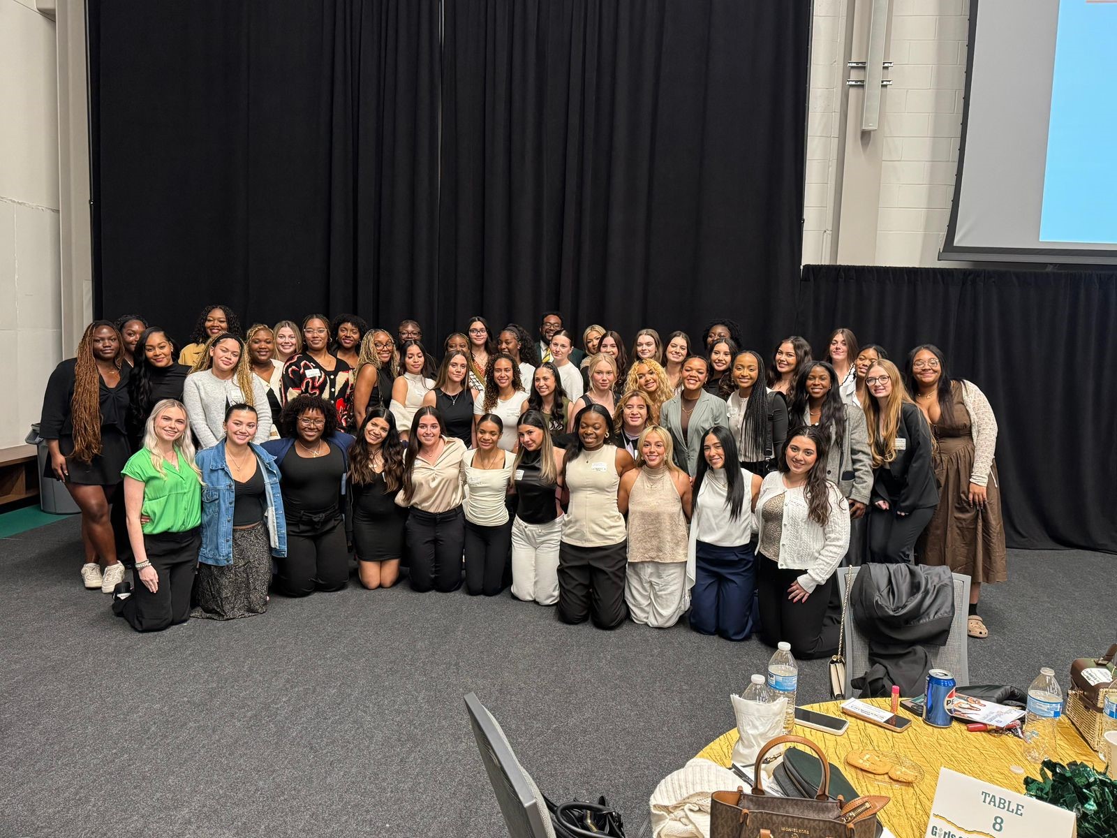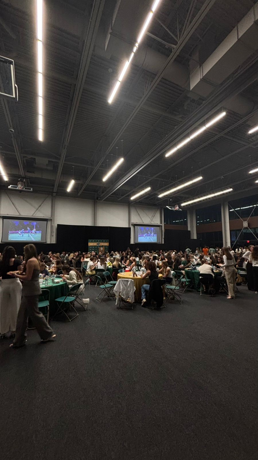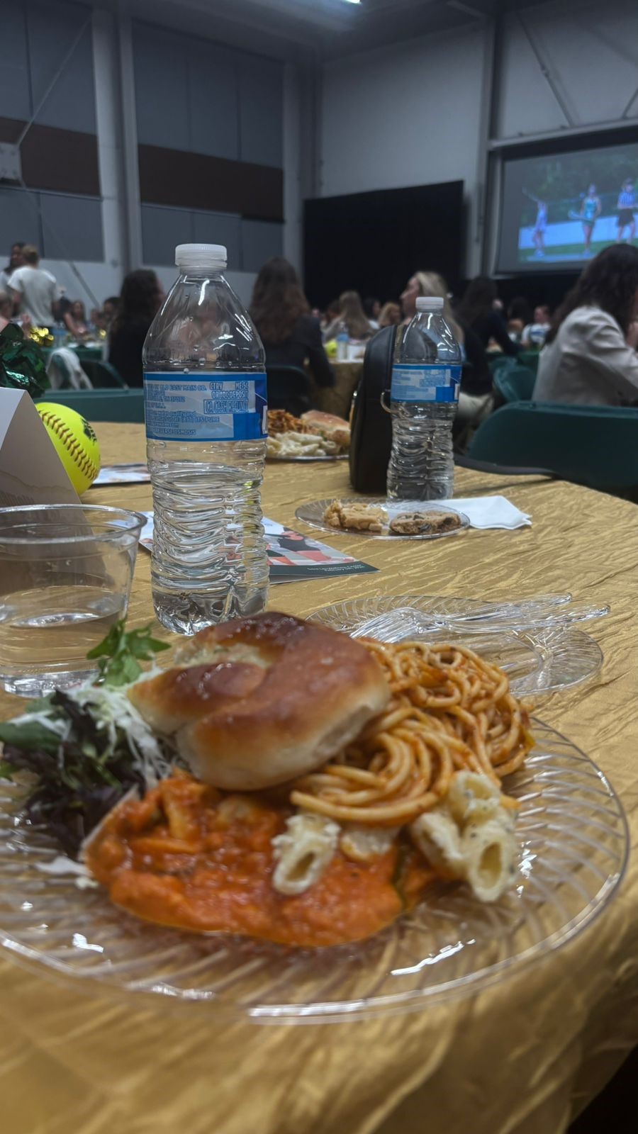 This event was set up by assigning athletes from the same team to different tables. The student-athletes had a name tag on each chair. The organization group of people from the athletics department was responsible for placing one male or female (if it’s a coach) fromeach team at each table. This is a strategic setup because it provides opportunities for each athlete to share their experiences and the team’s background. This was also a great opportunity to build new friendships with girls from other sports and allow them to meet new people.