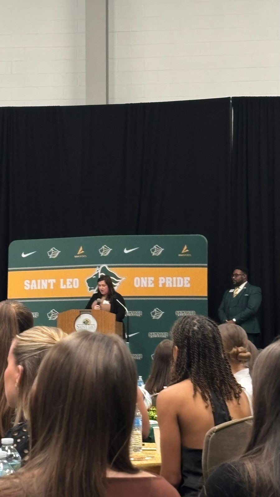 During the event, there were speeches from Marcel, the President of the Athletics Department, a women’s softball coach, and two senior student-athletes, one who plays golf and the other, soccer. They both spoke about how to succeed in the future and to always keep pushing through life. They were inspirational and showed how the Saint Leo community embraces women’s achievements in sports.